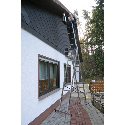 - дозволяє використовувати як приставні драбини, А-подібну стрем’янку або висувну 2-секційну драбину.