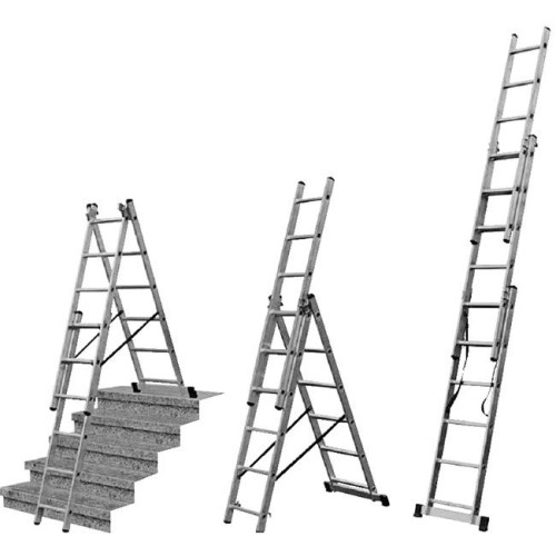 - дозволяє використовувати як приставні драбини, А-подібну стрем’янку або висувну 2-секційну драбину.