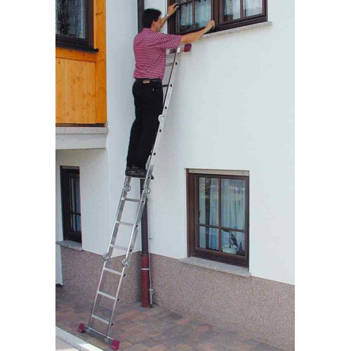 - Багатофункціональність. Може використовуватись у вигляді двох-сторонньої стрем’янки, приставної 4-секційної драбини, 3-секційної драбини та робочого підмостку.