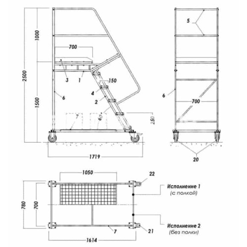 - Висота від підлоги до робочої платформи – 1,5 м;