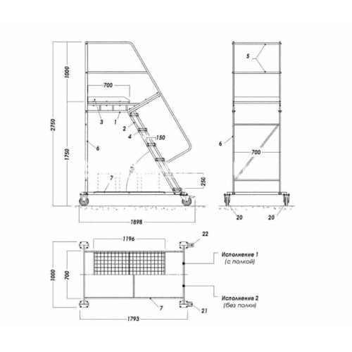 - Висота від підлоги до робочої платформи – 1,75 м;