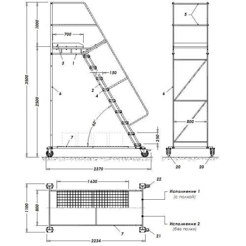 Драбина пересувна з полицею 3500 мм
