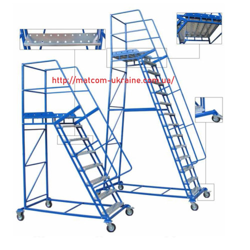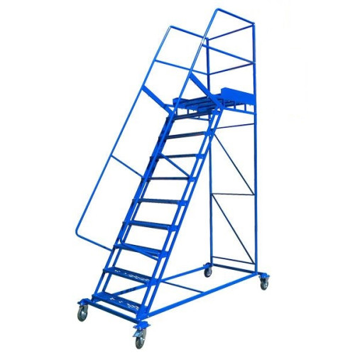 Експлуатація високих складських стелажів стала можливою завдяки появі пересувних драбин з платформами. Ця конструкція дозволяє не просто дістати до висоти 6-7 метрів, а й впевнено працювати на ній.