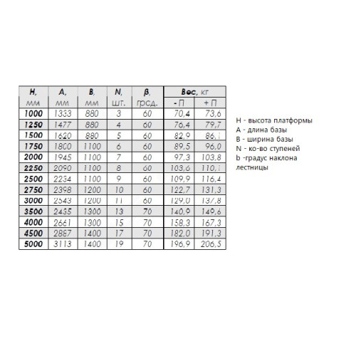 - Висота перил (огородження платформи) – 1 м;
