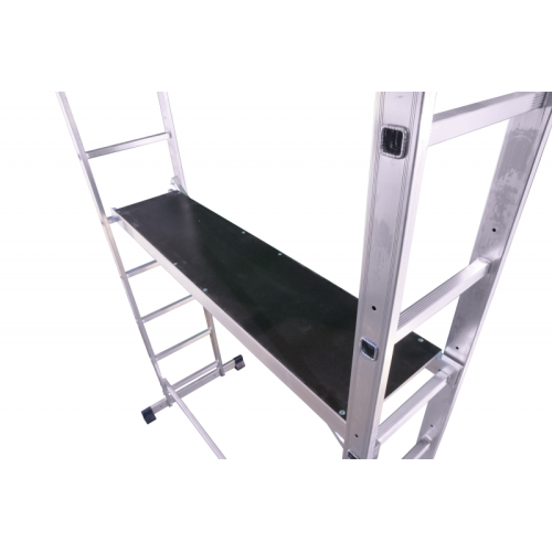 Легко трансформується в дві односекційні драбини або в одну двосекційну драбину. Також драбини можна скласти у двосторонню стрем'янку, що значно підсилює функціональність помосту.