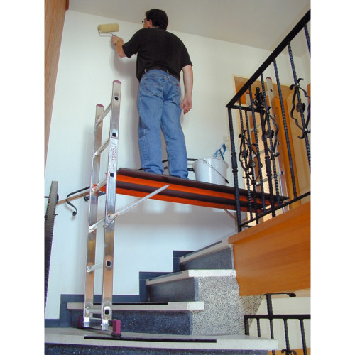 ПІДМОСТОК KRAUSE Corda 2х6 складаються з двох приставних драбин з 6 перекладинами, з широкою поперечною траверсою і неслизькою, вологостійкою робочою платформою (147 х 50 см):