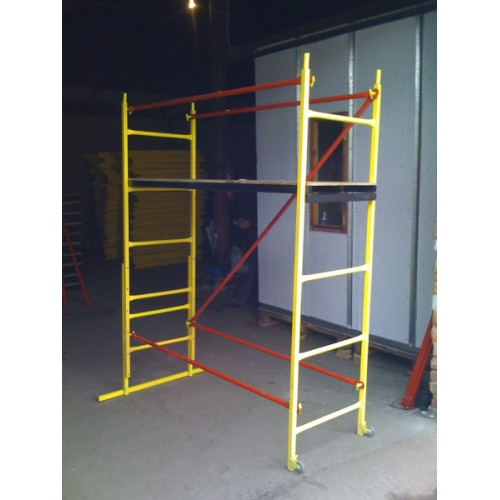На одній рамі підмосток оснащений поліпропіленовими колесами, на другій рамі – металевим брусом. За рахунок цього конструкція є мобільною, її просто переміщувати між приміщеннями.