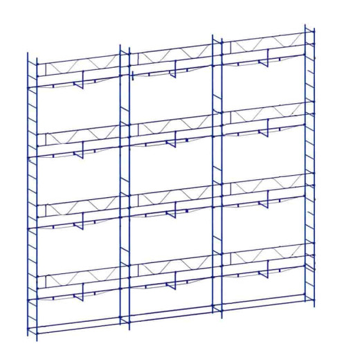 У цей набір риштування НЕ включені утримувачі настилів, самі настили та домкрати. Ці елемент риштування потрібно замовити додатково, адже у кожного замовника свій окремий запит на ці деталі. Наприклад, щити можна взяти лише на 1 поверх і переносити їх за потребою.