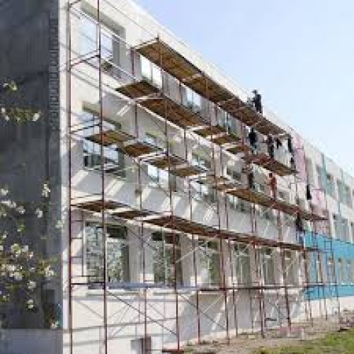 На будівництві риштовка рамного типу використовується для робіт з покриття фасаду, утеплення, ремонту стін, монтажу вентиляції та інших.