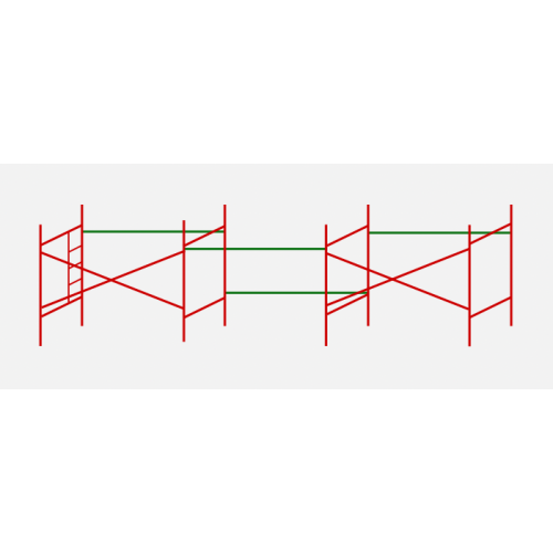 Як підібрати відповідний набір риштування, щоб було економно та надійно? Існує багато підходів до підбору комплектації. Необхідно врахувати висоту конструкції, планове навантаження, кількість одночасно задіяних робітників, можливість оперативно переставляти секції. Наш набір риштовки 2 х 9 метрів передбачає конструкцію за наступною схемою.