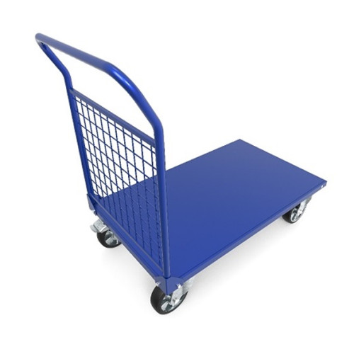 Візок-платформа для складу з однією ручкою, яка виконує функцію борта