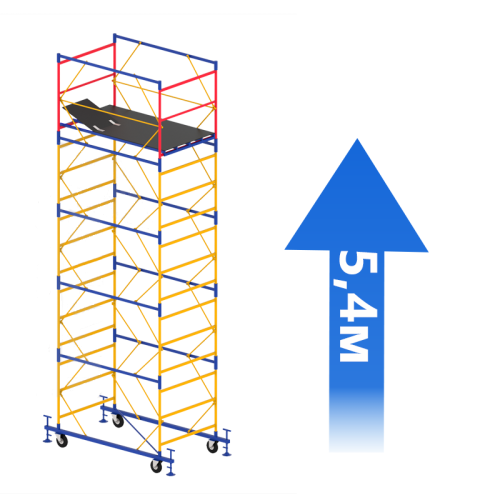 Робочий майданчик площею 1,2 х 2,0 метри дозволяє цій риштовці бути самою оптимальною вишкою для роботи на фасадах будівель. Висота цього виду риштування може досягати 20 метрів, коли комплекти нарощування встановлюються наверх один одного.