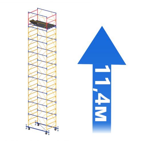 Робочий майданчик площею 1,2 х 2,0 метри робить це риштування оптимальним для роботи на фасадах будівель. Висота таких вишок може досягати 20 метрів, коли комплекти нарощування встановлюються наверх один одного.
