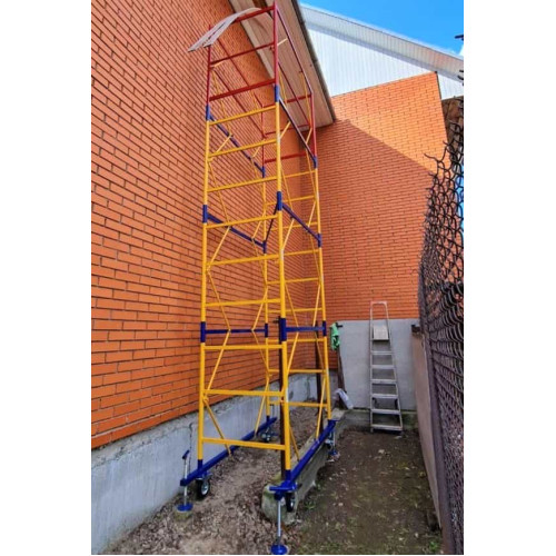 Мобільне риштування вишка тура 5 метрів надійно закріпилася у пріоритетах професійних будівельників та ремонтників. Комплектація 3+1 це риштування на 5 м, якщо потрібна вища вишка, варто перейти на Вишка-тура 6 метрів